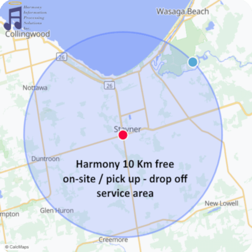 Yes free on-site services are provided if your location is within 10 km of Harmony's office, otherwise travel time is billed at Harmony's hourly rate. Click here for map.